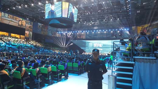 2017年6月27日上午8時,汕頭大學(xué)體育園內(nèi)燈光璀璨,金黃的鳳凰從中央屏幕上騰空而起,繞場一周,拉開了汕頭大學(xué)2017屆畢業(yè)典禮的帷幕。我司派駐保安員56人參加了安全護(hù)衛(wèi)任務(wù)。在總經(jīng)理王虎的帶領(lǐng)下圓滿完成安全護(hù)衛(wèi)任務(wù),并受到客戶高度認(rèn)可和滿意。