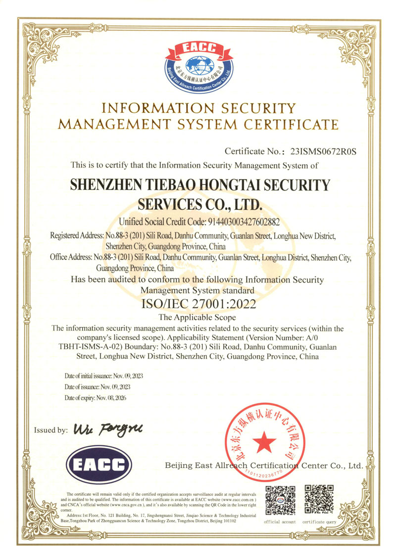 信息安全管理體系證書(英文)